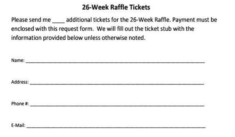 * Drop in the collection basket on weekends in an envelope marked "26-Week Raffle"