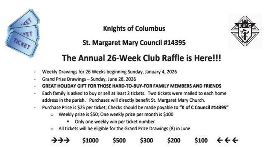 * Tickets can be purchased directly from Knights at their table in the Narthex